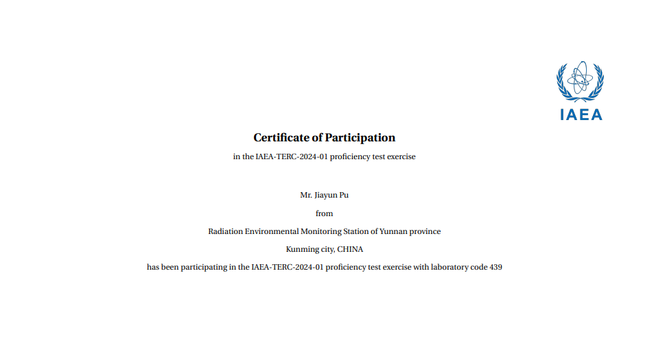 积极参加实验室比对和高水平能力验证活动,持续提升检测能力。参加实验室比对和能力验证是检验实验室检测能力与提高检测水平的重要技术手段。2024年,云南省辐射站先后参加了由生态环境部辐射环境监测技术中心、生态环境部核与辐射安全中心、中国辐射防护研究院等机构组织实施的实验室比对活动,均获得满意结果。同年,云南站还首次参加了国际原子能机构(IAEA)组织的全球放射性实验能力验证活动(IAEA-TERC-2024-01批次),17个分析项目中,1个分析结果不满意,2个不确定度不满意,其余均获“A”(即“满意”)评价。针对存在的“不满意”结果,云南站还专门组织相关人员进行了复盘验证,分析原因,积累经验。